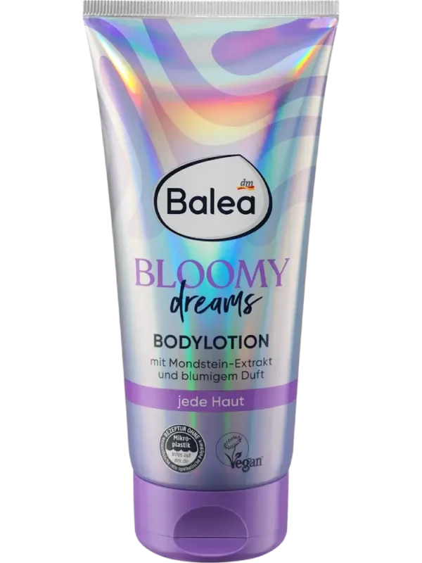 يتميز لوشن الجسم بلومي دريمز من Balea بمستخلص حجر القمر وعطر زهري جذاب. تركيبته سريعة الامتصاص تمنح البشرة ترطيبًا مكثفًا، ما يتركها ناعمة وذات ملمس مريح.