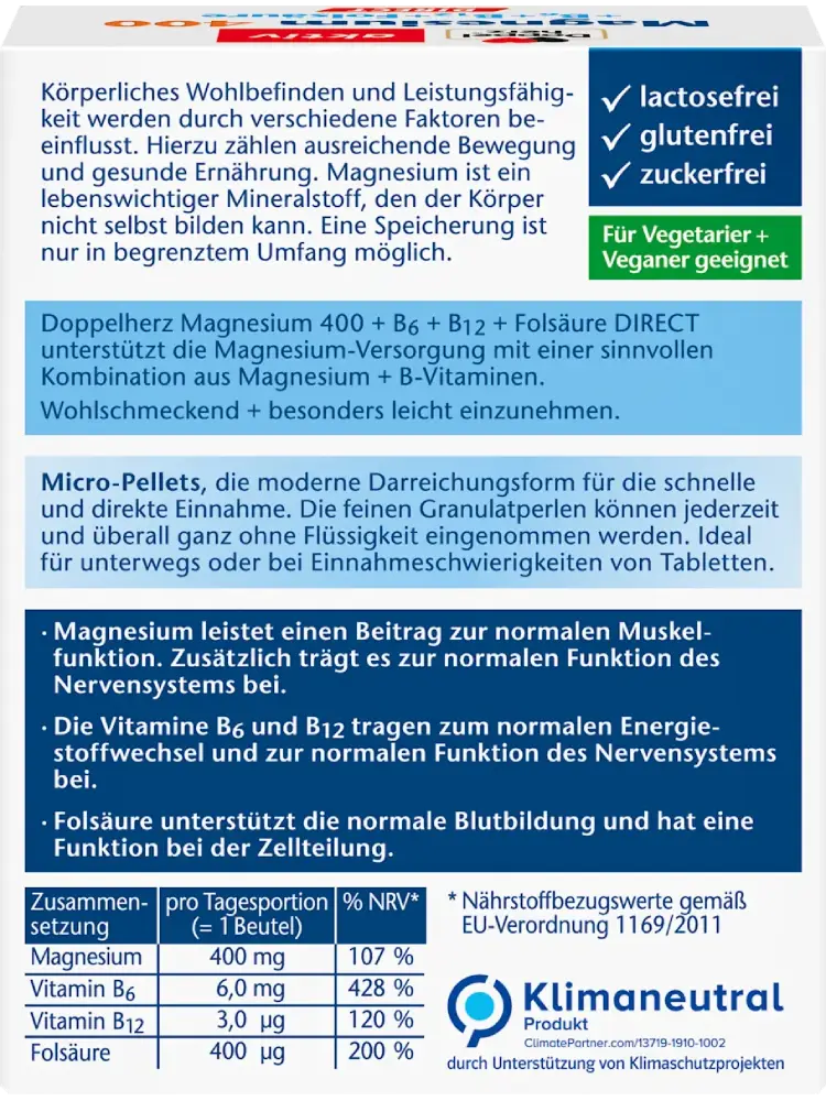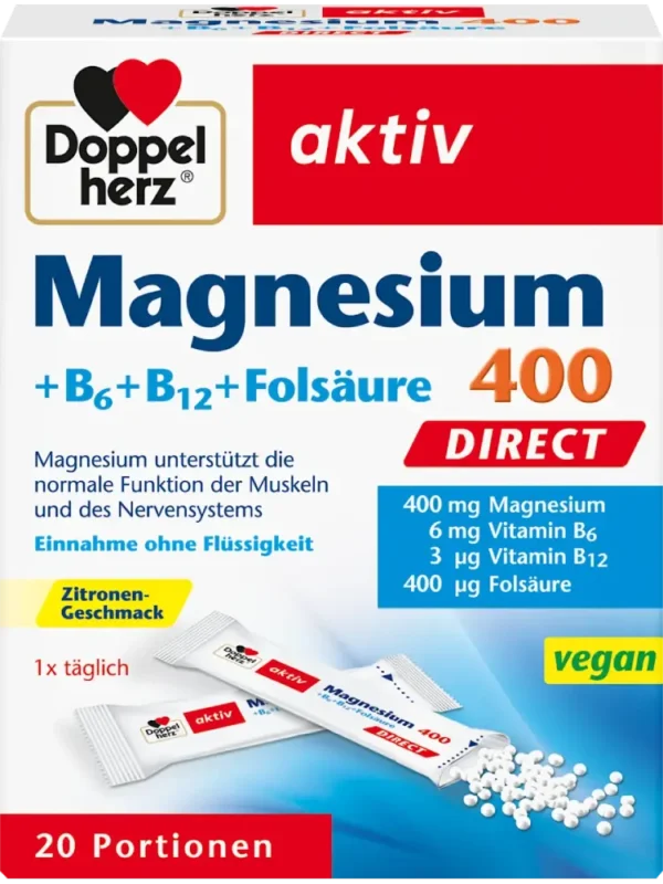 Doppelherz Magnesium 400 + Vitamine B6 + B12 + Folsäure Direktgranulat 20 St., 24 g
