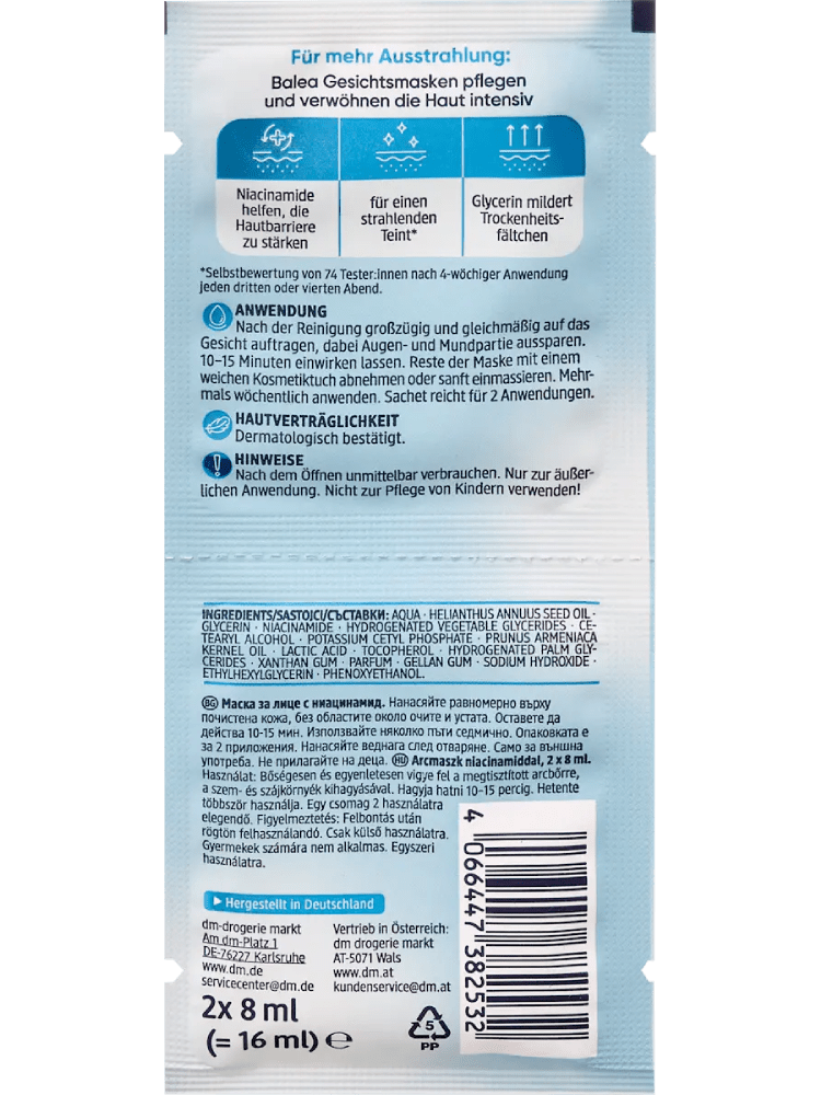 Balea Niacinamid Gesichtsmaske, 16 ml