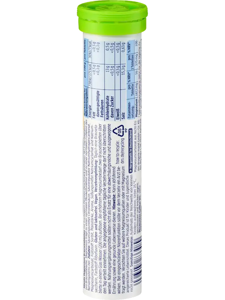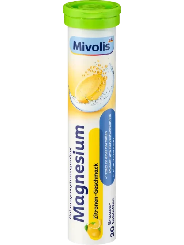 تحتوي أقراص المغنيسيوم الفوّارة من Mivolis بنكهة الليمون الفاكهية على 187.5 ملغ من المغنيسيوم في كل قرص فوّار. يساهم المغنيسيوم في الوظيفة الطبيعية للعضلات وكذلك في الوظيفة الطبيعية للجهاز العصبي.