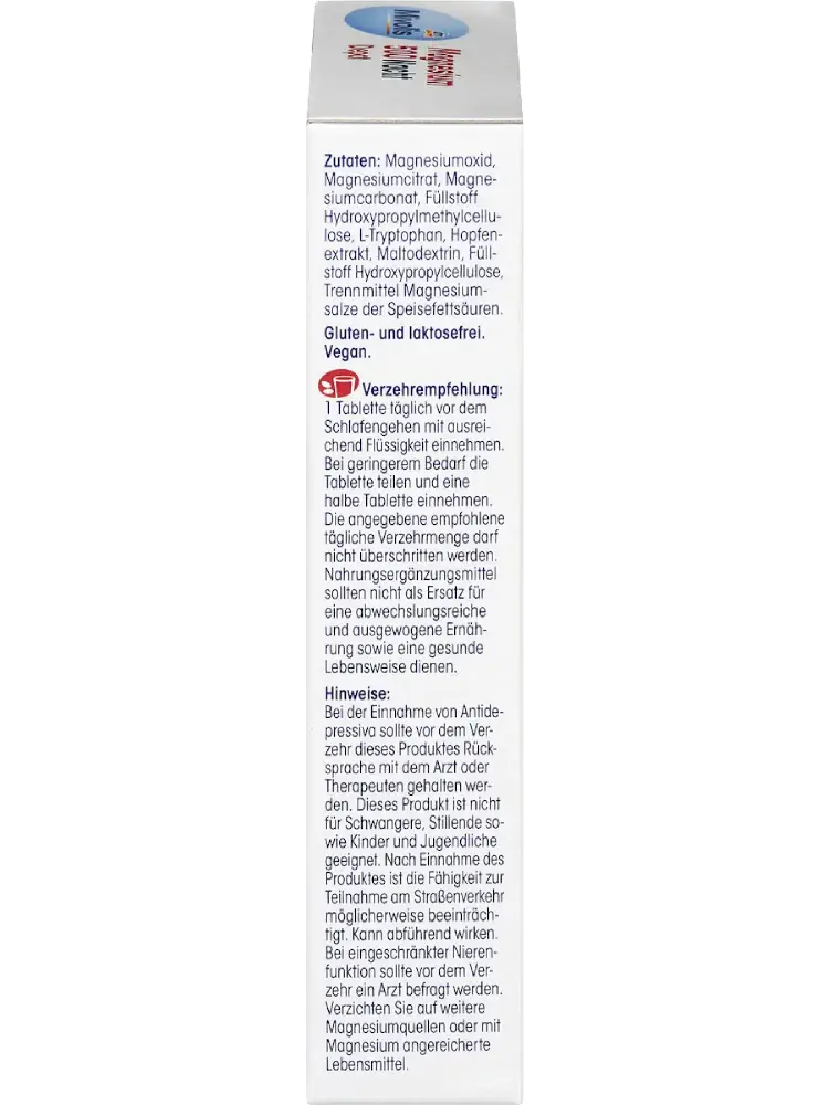 Pour des muscles détendus* pendant le sommeil3 formes de magnésium pour une bonne biodisponibilité1 fois par jour – dosage élevéAvec L-tryptophane + extrait de houblonÀ libération prolongée (effet depot)