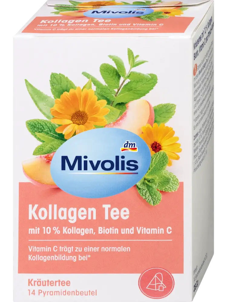 Offrez-vous votre rituel beauté quotidien avec le thé au collagène Mivolis. Le mélange harmonieux d’herbes sélectionnées, d’aloe vera et de menthe poivrée rafraîchissante éveille les sens. Sublimé par une note fruitée de pêche, ainsi que par le collagène, la biotine et la vitamine C*, ce thé accompagne parfaitement un mode de vie axé sur la beauté.