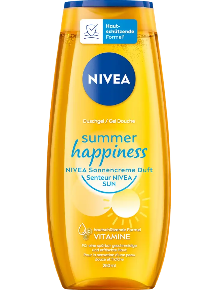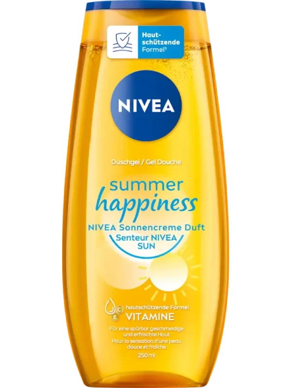 Découvrez une expérience de douche estivale avec le gel douche NIVEA Summer Happiness. Son parfum unique ravive vos souvenirs de vacances et met de bonne humeur.