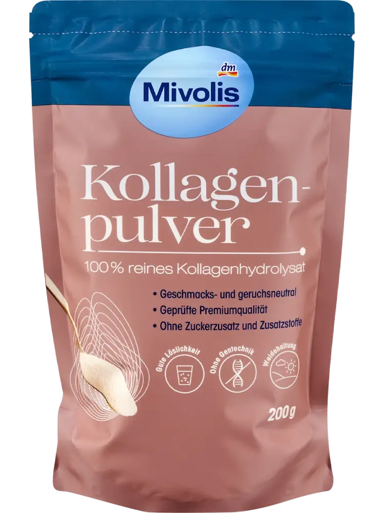 يأتي مسحوق الكولاجين الممتاز Mivolis من أبقار تتغذى على العشب وترعى في المراعي. هذا المسحوق النقي من الهيدروليزي، الخالي تماماً من المواد المضافة، مناسب للاستخدام في المشروبات والأطعمة. الطعم المحايد يجعله أيضاً مثالياً لتحضير وصفات غنية بالبروتين عند الطهي والخبز.