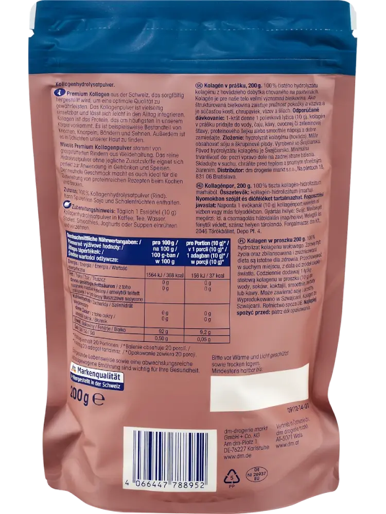 كولاجين مميز من سويسرا، يتم تصنيعه بعناية لضمان جودة مثالية. يمكن استخدام مسحوق الكولاجين بشكل متعدد وسهل الدمج في الحياة اليومية. الكولاجين هو البروتين الأكثر وفرة في أجسامنا، ويوجد على سبيل المثال في العظام، الغضاريف، الأربطة والأوتار. كما يوجد في طبقات بشرتنا.
