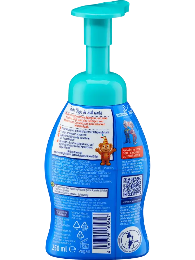رغوة الغسيل للأطفال ساو بير يوروبا بارك سباß تمنح عناية لطيفة وممتعة. بفضل تركيبتها الكريمية الناعمة ورائحتها المنعشة، يصبح تنظيف اليدين والوجه متعة حقيقية. التركيبة اللطيفة مع مواد عناية معيدة للدهون تنظف برفق شديد. وتساعد المواد الفعالة الطبيعية في الحفاظ على ترطيب البشرة. رغوة الغسيل هذه لطيفة جداً ومصممة خصيصاً لتلبية احتياجات بشرة الأطفال الحساسة.