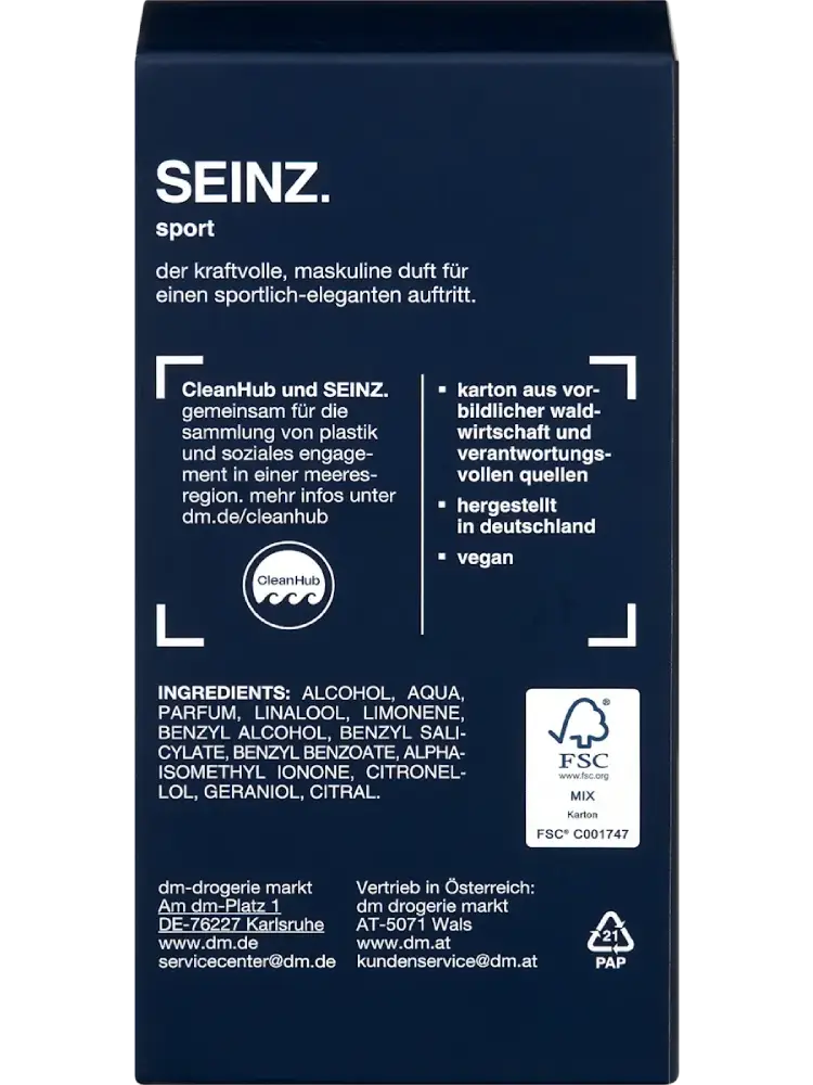 L’Eau de Toilette Sport de SEINZ. est parfaite pour tous les amateurs de sport. Ses notes parfumées puissantes sont harmonieusement combinées et offrent une présence sportive et élégante. Idéale pour commencer la journée avec confiance et énergie.
