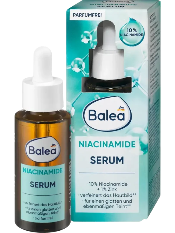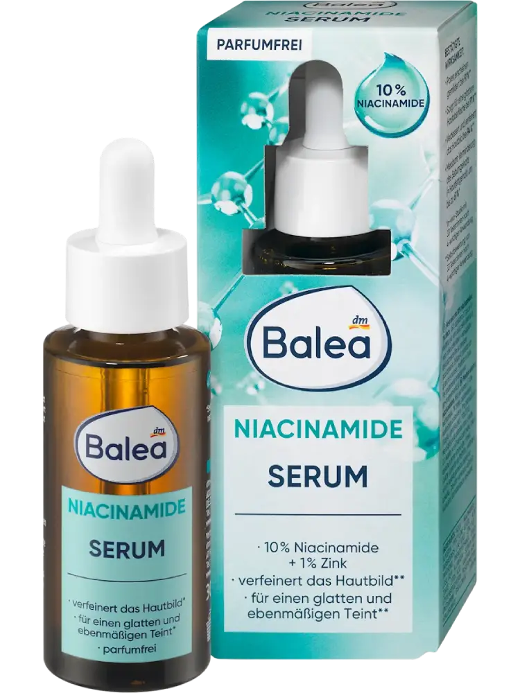 منتج متعدد الفوائد لبشرة جميلة ومحمية: يساعد نياسيناميد من Balea في دعم حاجز البشرة وتحسين مظهرها.