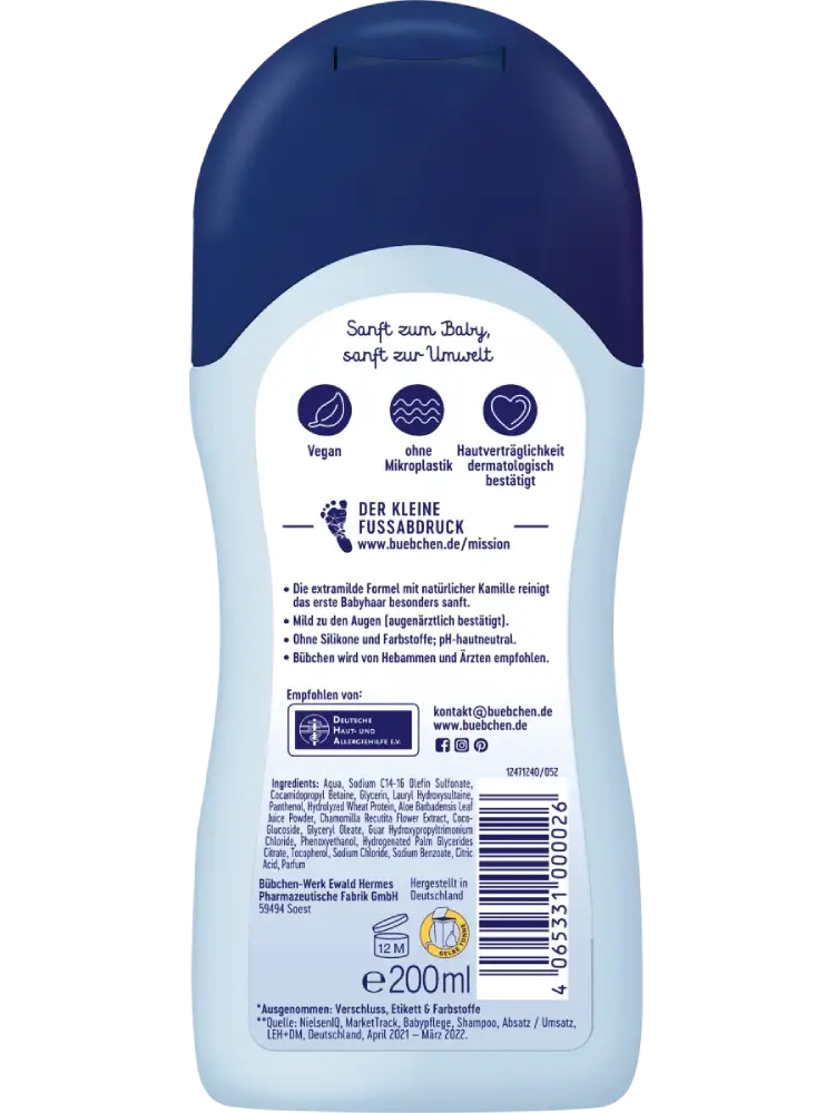 بفضل أكثر من 60 عامًا من الخبرة، طوّرت شركة Bübchen شامبو للعناية اللطيفة مصمم خصيصًا لحماية بشرة الأطفال الحساسة.