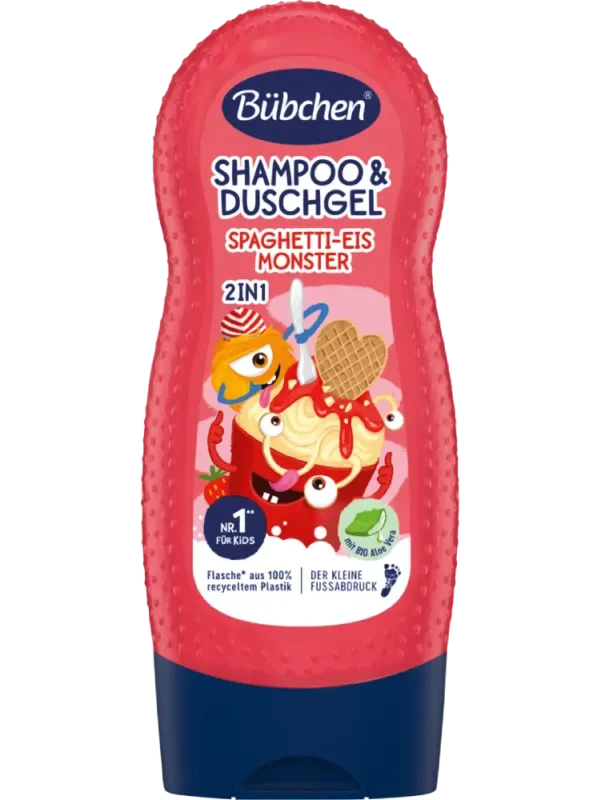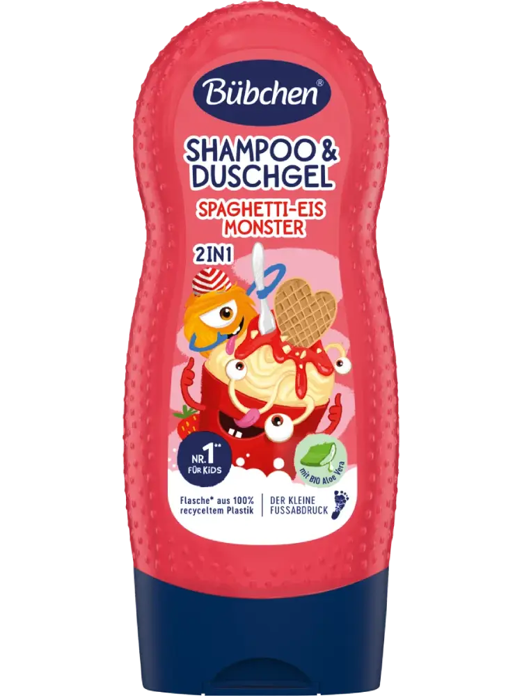 شامبو وجل استحمام للأطفال 2 في 1 سباغيتي آيس مونستر من ماركة Bübchen لا يتميز فقط باسمه الجذاب. بفضل تركيبته المصممة خصيصًا لبشرة الأطفال الحساسة، يضمن عناية لطيفة وتنظيفًا ناعمًا. بالإضافة إلى ذلك، تجمع التركيبة المرطبة بين وظيفة الشامبو وجل الاستحمام.