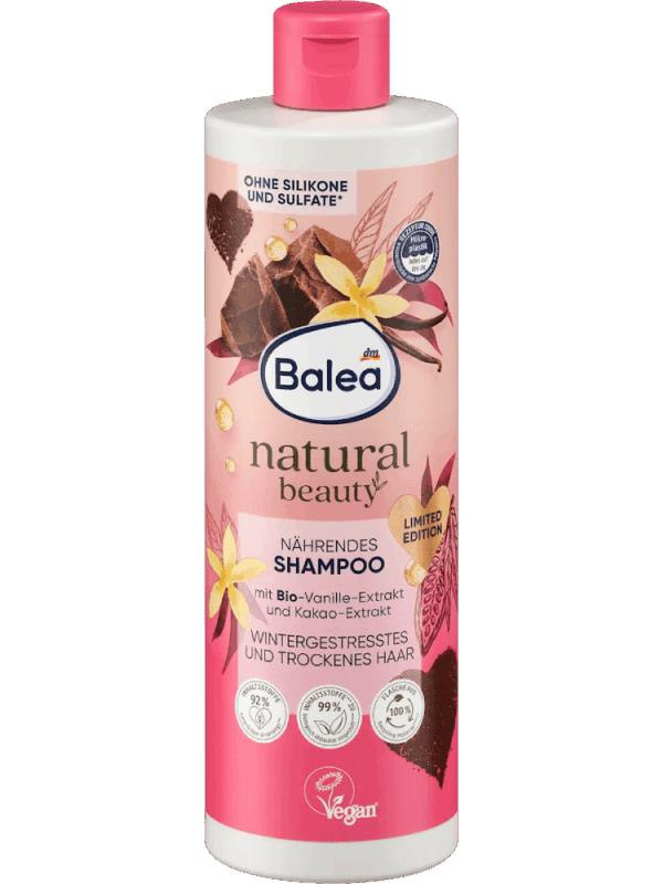 Le shampooing Natural Beauty Vanille-Extrait & Beurre de Cacao nourrit intensément les cheveux et leur apporte douceur et éclat naturel. Il est spécialement conçu pour les cheveux secs et fragilisés par l’hiver.