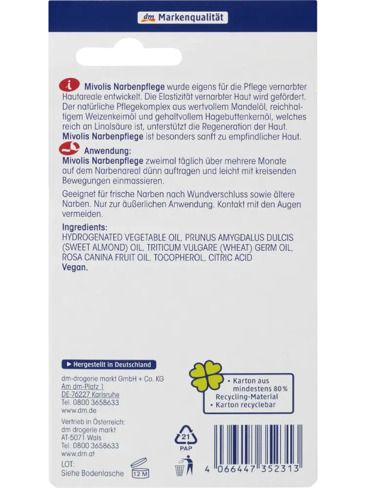 منتج Mivolis للعناية بالندوب لطيف بشكل خاص على البشرة الحساسة.