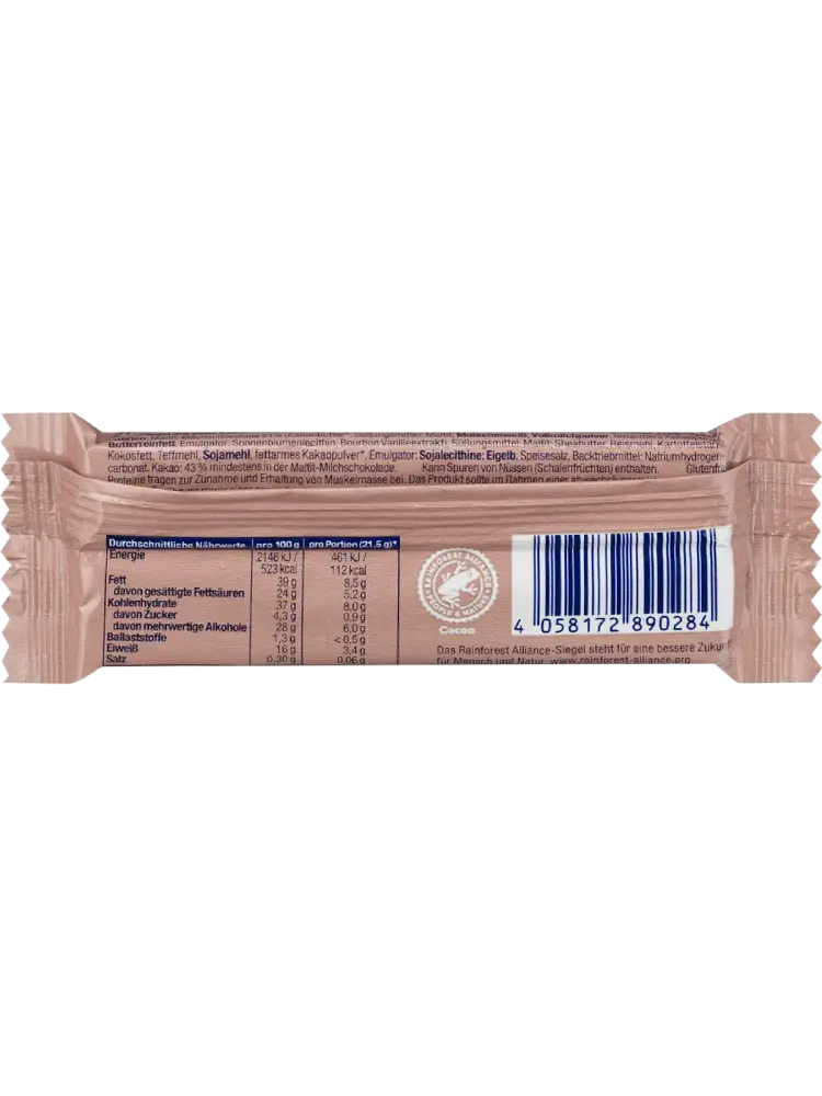 Elles sont enrobées d’un chocolat au lait protéiné à base de maltitol.