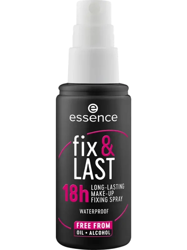 مع بخاخ تثبيت المكياج Fix & Last 18h Long-Lasting من essence، يمكنك الحصول على مكياج يدوم حتى 18 ساعة.