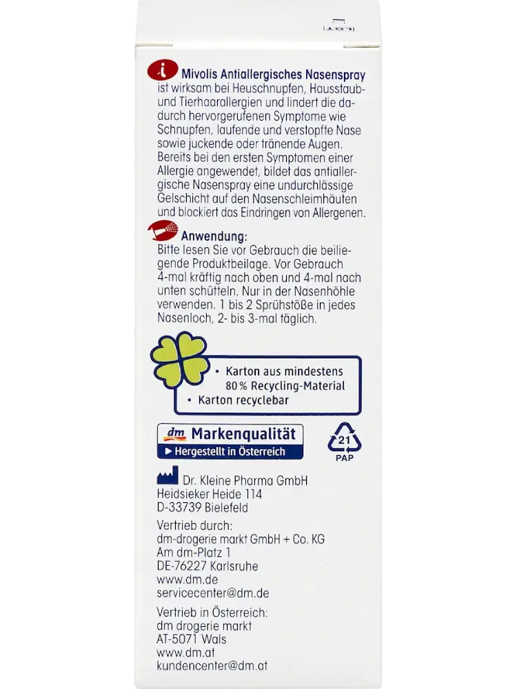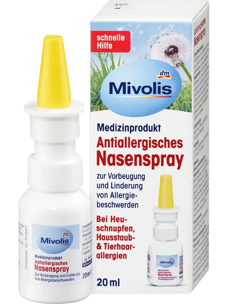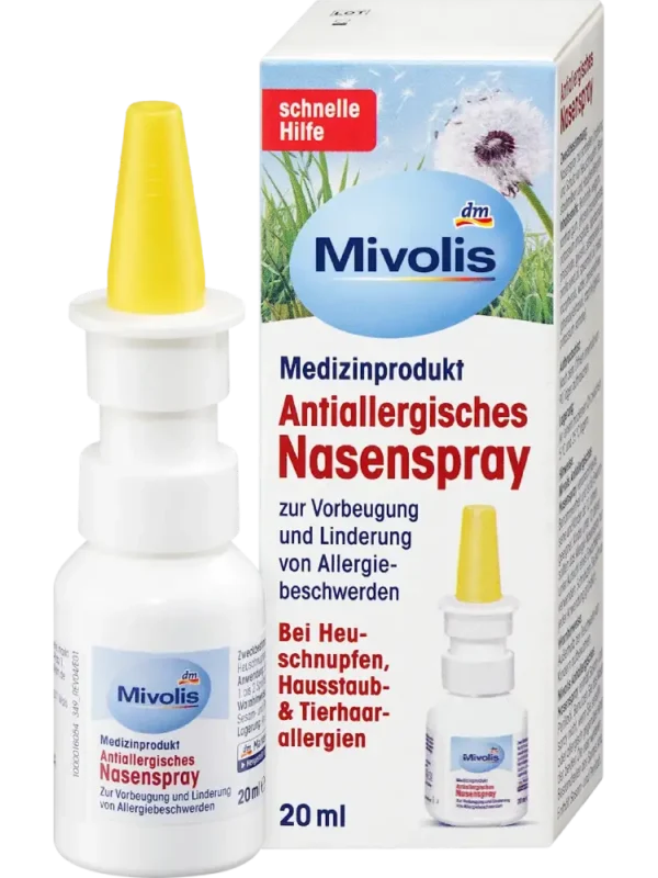يعد بخاخ الأنف المضاد للحساسية من Mivolis فعالاً في حالات حساسية حبوب اللقاح، حساسية الغبار المنزلي وحساسية شعر الحيوانات. يخفف من الأعراض المصاحبة مثل سيلان الأنف، انسداد الأنف، وحكة أو دموع العيون. عند استخدامه عند ظهور أولى أعراض الحساسية، يشكل بخاخ الأنف المضاد للحساسية طبقة هلامية غير قابلة للاختراق على الأغشية المخاطية الأنفية، مما يمنع دخول المواد المسببة للحساسية.