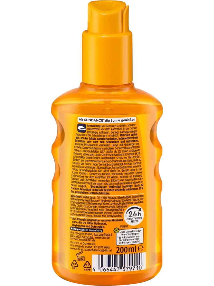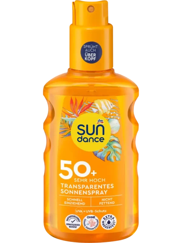 Le spray solaire transparent SUNDANCE SPF 50+ avec protection UVA/UVB pénètre rapidement, ne laisse pas de film gras et prend soin de la peau. La tolérance cutanée est dermatologiquement confirmée. Extra résistant à l’eau*.