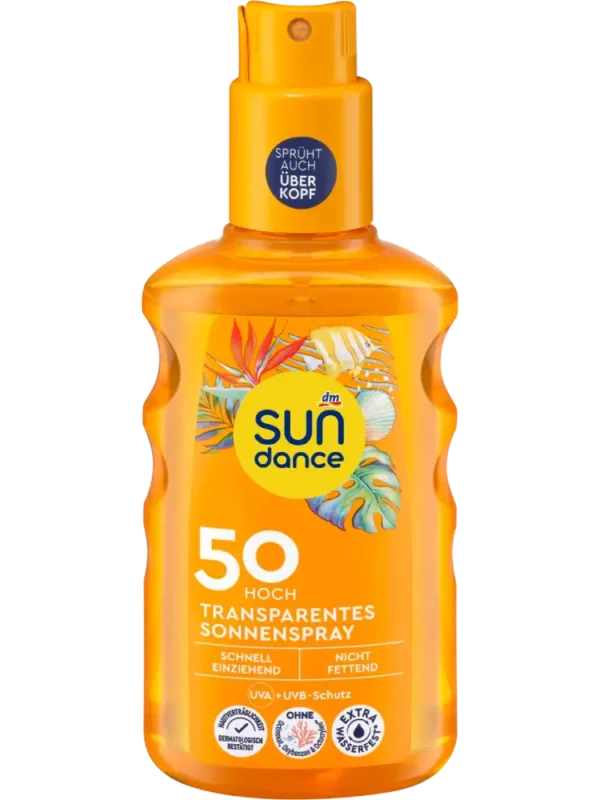 Été, soleil, coups de soleil ? Pas avec le spray solaire transparent de SUNDANCE. Avec son SPF 50, il protège la peau contre les coups de soleil douloureux et les rayons UV nocifs. Sa formule transparente pénètre rapidement sans coller, sans graisser et sans laisser de traces blanches. Le spray solaire hydrate la peau jusqu’à 24 heures, prévenant ainsi son dessèchement. Tolérance cutanée testée dermatologiquement. Résistant à l’eau* (*Institut de test indépendant : après 40 minutes dans l’eau, au moins 50 % du facteur de protection solaire reste efficace). Par respect pour nos océans, sans filtres UV octinoxate, oxybenzone ni octocrylène. Vegan.