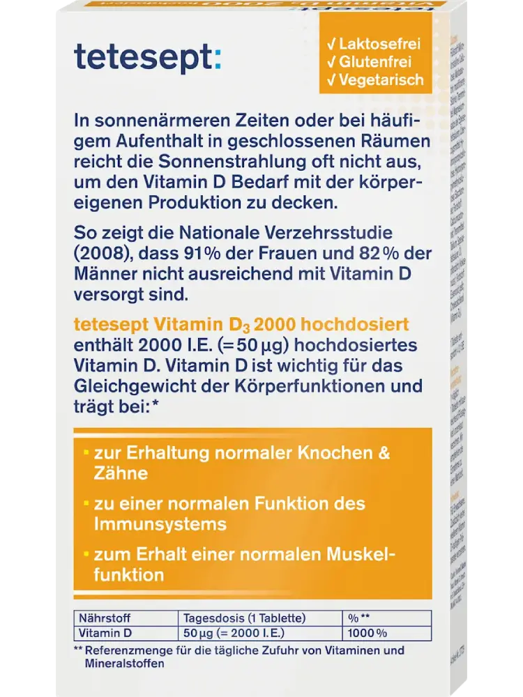 tetesept Vitamin D3 2000 I.E Tabletten 50 St, 15,3 g